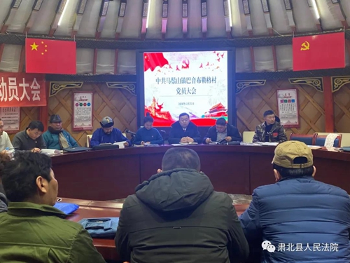 12月22日,酒泉市肃北县法院党组书记、代院长魏文盛深入马鬃山镇巴音布勒格村实地督导该村“两委”换届选举工作,全程参与了该村党支部委员会全体党员大会,现场督导该村新一届党支部委员会换届选举工作,并为该村“两委”班子成员和村民代表进行了十九届五中全会精神专题辅导宣讲。