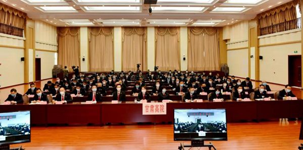 省法院班子成员、审委会专职委员、二级巡视员、二级高级法官、特级法官助理及各部门正副职在主会场参加会议。各市、州中院、直属法院院长及班子成员、审委会专职委员、相关部门负责人在分会场参加会议。(甘肃省高院供稿)