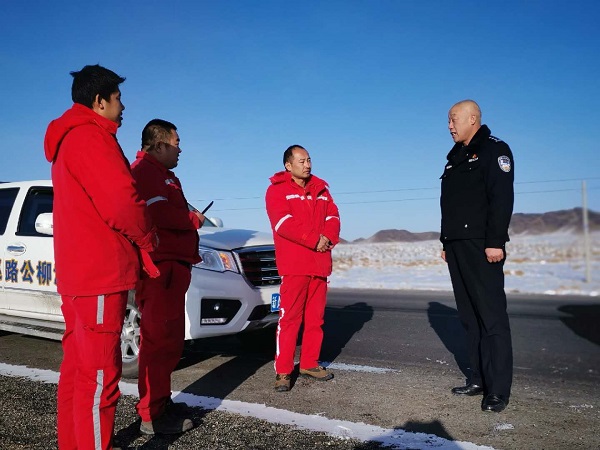 加强与气象部门的信息共享,及时主动的提供气象信息和科学评估恶劣天气影响,交警部门通过短信平台、微信、微博等及时向社会发布恶劣天气出行安全提示,引导广大人民群众安全出行,有效保障了人民群众的生命财产安全。同时,与敦煌公路段建立应急联动机制,就联勤联动、机械保障、铲雪除冰物资等多方面达成共识,密切配合,共同做好道路交通安全管理工作。(酒泉市肃北县公安局交警大队供稿)